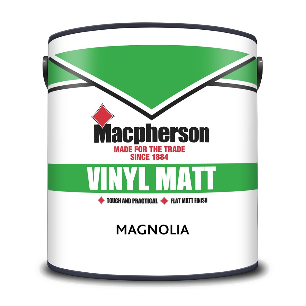 Macpherson Vinyl Matt Emulsion Magnolia 2.5L is a tough interior wall and ceiling paint with a flat matt appearance that helps reduce surface glare and create a more even decorative finish. It is formulated for straightforward application and offers a practical balance of coverage, finish quality and everyday usability.