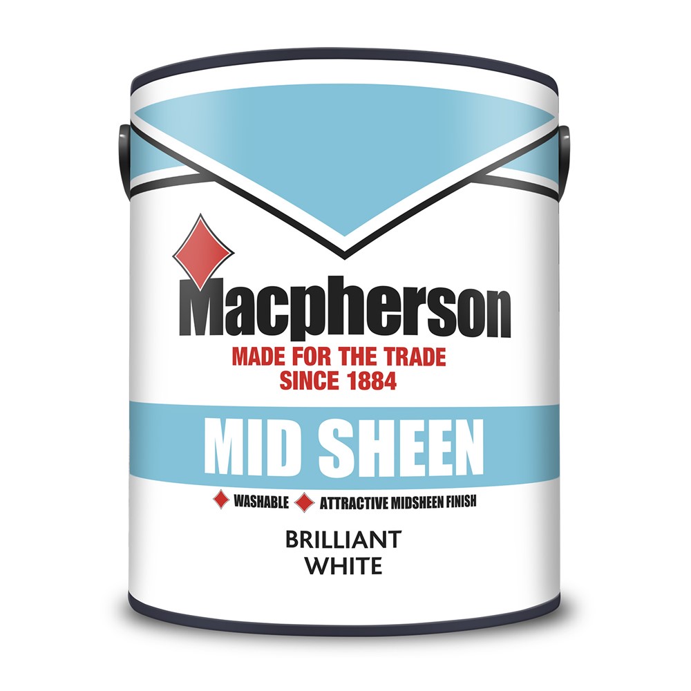 Macpherson Mid Sheen Emulsion Brilliant White 5L is a washable interior coating designed for walls and ceilings where a smooth finish with a subtle sheen is required. It offers a useful alternative to flatter matt finishes or higher-sheen silk coatings, giving surfaces a balanced decorative look that remains practical for everyday use.