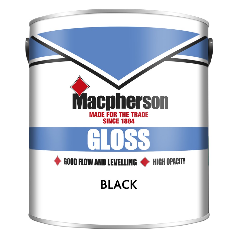 Macpherson Gloss Black 2.5L is a high sheen gloss paint designed for use on wood and suitably primed metal where a strong, traditional finish is preferred. The black colour gives surfaces a more striking appearance, making it well suited to trim, feature joinery and other areas where a darker gloss coating is required.