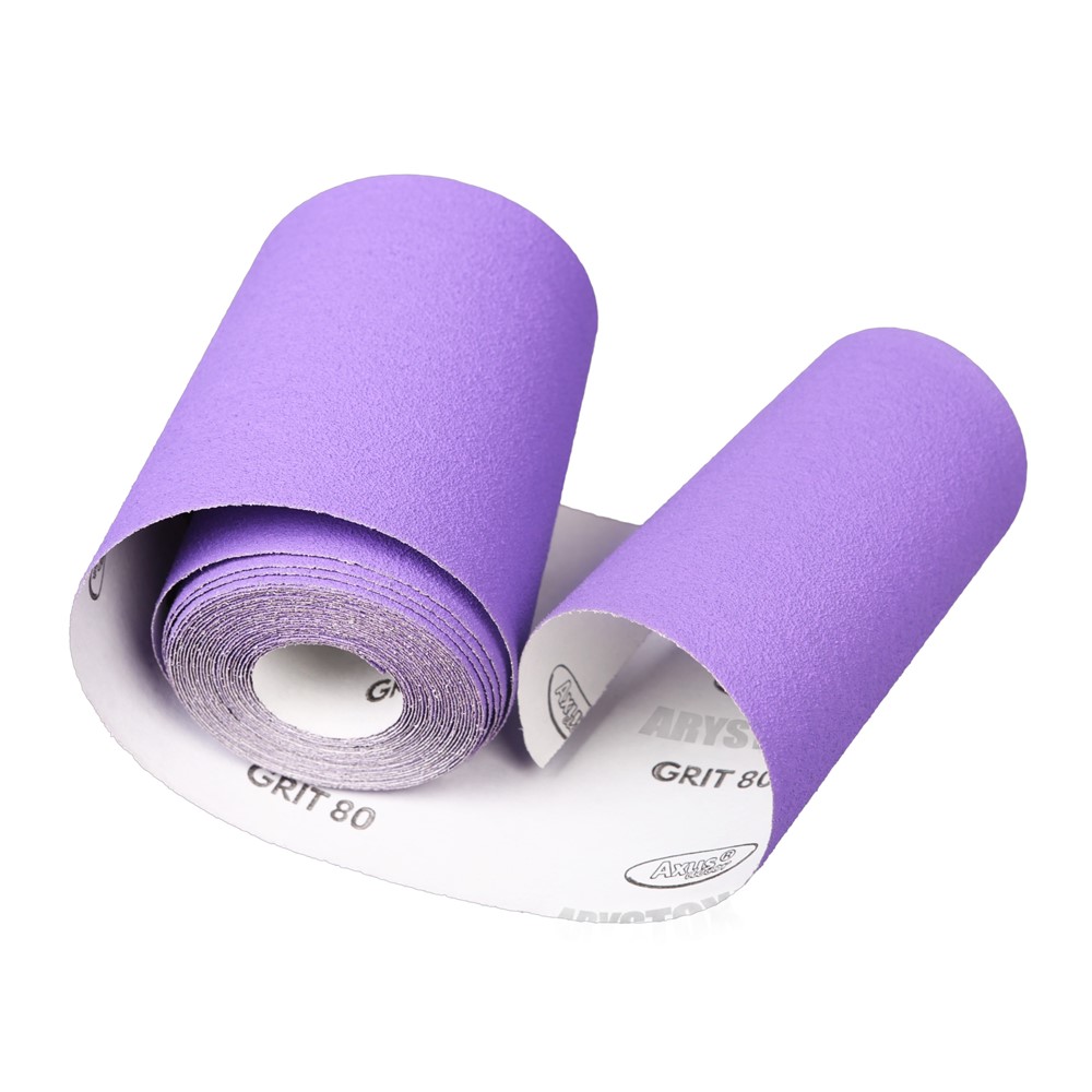 Offering controlled material removal, this 80 grit ceramic oxide abrasive paper roll is suited to shaping and smoothing rough surfaces before finishing.