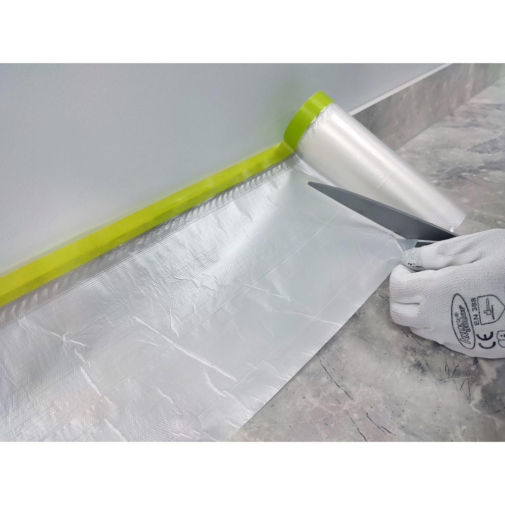 The film uses static cling technology to hold itself in place without the need for adhesive, helping reduce movement while in use and allowing clean removal once work is complete. Its generous width makes it suitable for covering rooms efficiently with fewer joins.