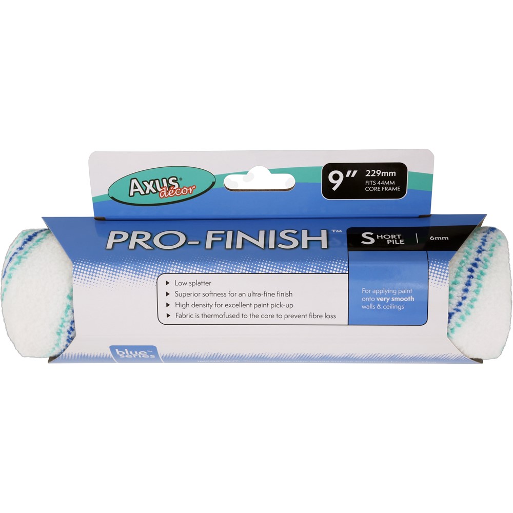 Axus Pro-Finish Short Pile Roller Sleeve Blue 9" is designed for controlled paint application on smooth interior walls and ceilings where a neat finish is the priority.