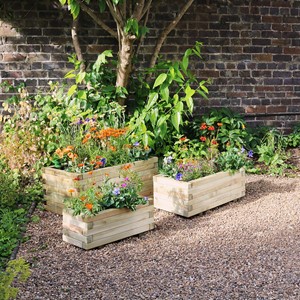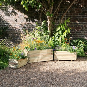 The Gresford Planter Set offers a stylish and practical way to showcase plants in any outdoor space. Consisting of three solid wooden planters in small, medium, and large sizes, this set is perfect for creating vibrant, multi-level displays on patios, garden decking, or pathways. Each planter arrives pre-assembled with sturdy wooden bases and is elevated to help reduce weed growth and deter pests. Constructed from pressure-treated, sustainably sourced timber, these planters are designed to endure the elements and provide a reliable growing solution for flowers, herbs, or vegetables.