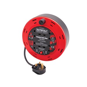 Faithfull 10m Cable Reel 10A, 4 Sockets
